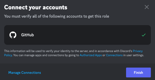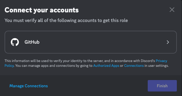 The first step is to link your GitHub account to our Discord Server.